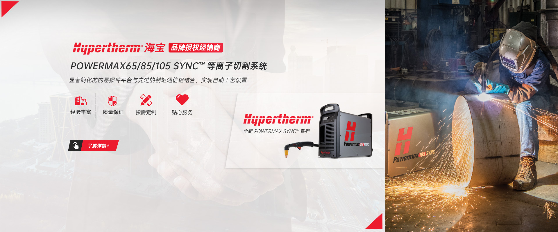 常州市圣力得商贸有限公司是一家集数控等离子/激光切割机,自动焊接设备,全自动铣边机,机器人的专业销售和技术服务为一体的公司。本公司是世界品牌Hypertherm(美国海宝)公司的授权经销商。  公司是一支技术稳定、服务优良、富有朝气的精英团队。公司致力于将国外先进的切割跟焊接设备和技术介绍给中国的机器制造商和终端用户,并为用户提供品质的产品和完善的售后服务。  公司主要代理以下产品:  1.美国海宝Hypertherm等离子机用电源,手持电源,原装易损件及备件  2.韩国赛拉科(CERACO)铣边机,南京顶瑞自动焊接小车  3.迈誓坦(MicroStep),日本田中(TANAKA),武汉法利莱(FARLEY-LASERLAB),江苏博大品牌等离子切割机,激光切割机及维修配件。  4.美国海宝,美国飞马特,凯尔贝等原装正品易损件及配件  5.激光切割机,等离子切割机,火焰切割机升级,安装与调试及技术升级改造项目  6.机器人焊/切生产线  热忱欢迎广大用户前来询价及洽谈。